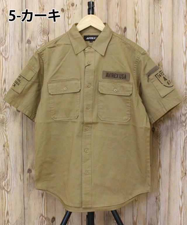 送料無料 AVIREX アヴィレックス 半袖 ファティーグ カーキシャツ コットン ミリタリーシャツ 綿100% おすすめ おしゃれ 通販 春 夏 服