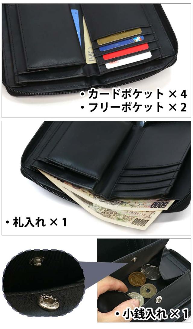 ■ポケット:札入れ×1、小銭入れ×1、フリーポケット×2、カード入れ×4