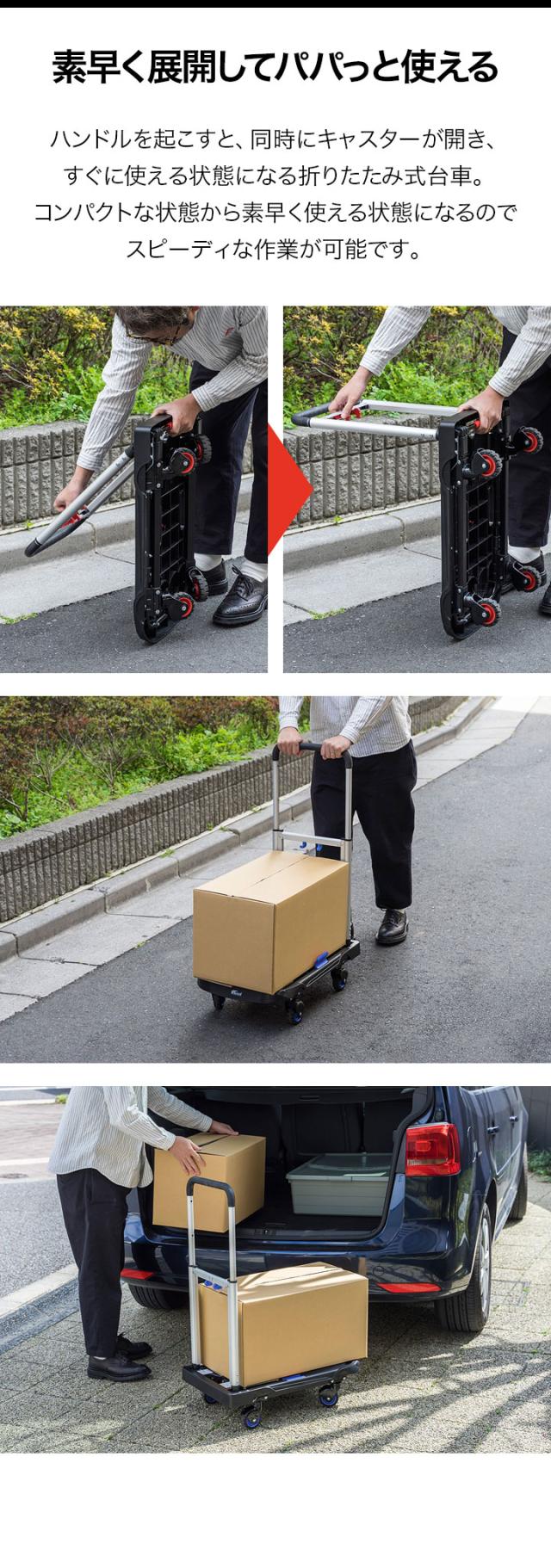 車輪折りたたみ式台車 フラットキャリー 手押し台車 4輪台車 四輪台車 スチール台車 アルミ台車 折りたたみ台車 折り畳み台車 運搬台車 運搬車 荷車 荷台 荷台ワゴン トロリー カート キャリーカート キャリングカート ワゴン キャリーワゴン ハンドキャリー 手押しキャリー ショッピングカート ショッピングキャリー ショッピングバッグ ショッピングカー 買い物カート 買い物キャリー ハンドカート ハンドトラック 折りたたみキャリー ホームキャリー ハンドル 持ち手 3段階 伸縮 調整 調節 コンパクト スリム 軽量 薄型 小型 省スペース 隙間 アルミ スチール キャスター 車輪 タイヤ 持ち運び ポータブル 折りたたみ 折り畳み 運搬 荷物運び お買い物 アウトドア キャンプ 引っ越し 引越し 家具 玄関 トランク 車載 家庭用 業務用 ゴミ出し ガーデン 庭仕事 ガレージ 荷運び 配送 配達 荷下ろし 荷積み 荷物整理 倉庫 現場 整理整頓 大掃除 清掃 買い出し 商業用 商店 事務所 介護施設 イベント フェス 蚤の市 展示会 即売会 出店 農作業 農業 園芸 工場 工事用 レジャー用品 工具運搬 頑丈 耐久 耐荷重 高耐久 多用途