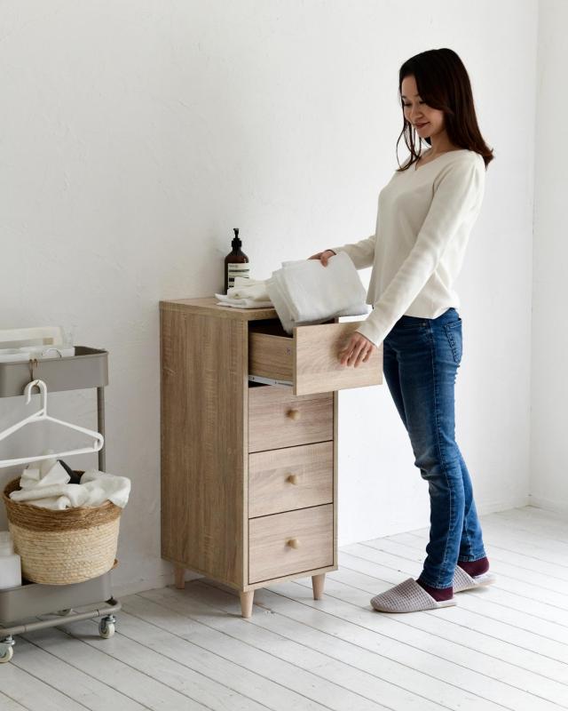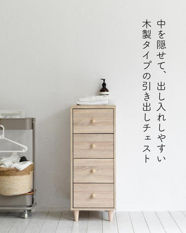 ホコリの入りにくい 木製 チェスト スリム 4段 幅34 奥行42 高さ87 cm 洗面所 子供部屋 クローゼット 収納 ランドリー チェスト 一人暮らし 引出し 山善 YAMAZEN 【送料無料】
