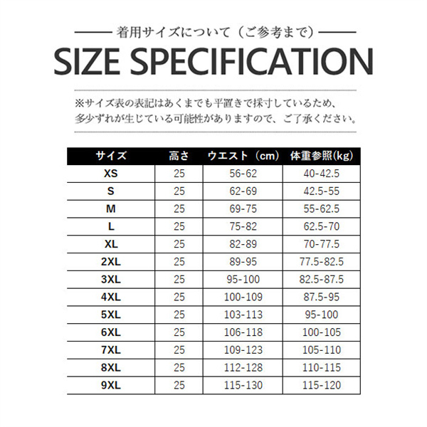 サイズ:/XS/S/M/L/XL/2XL/3XL/4XL/5XL/6XL/7XL/8XL/9XL