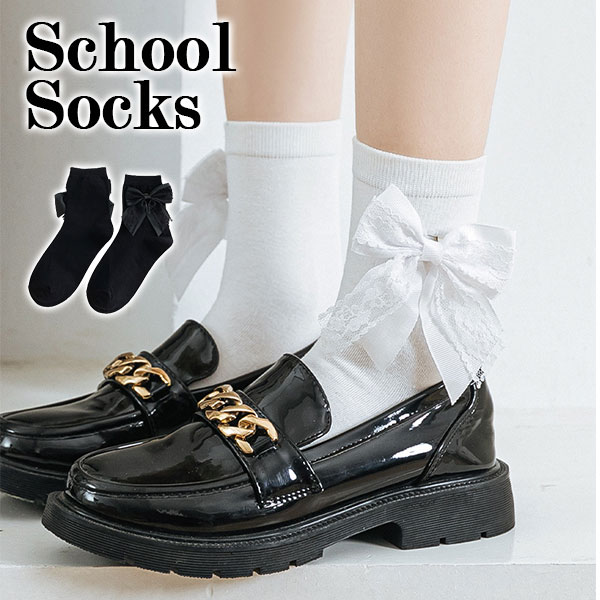 スクールソックス ワンポイン プレイボーイ リボン クルーソックス 靴下 学生用 消臭 高生用 学校 通学 学生 幼稚園 小学生 高校生 中学生
