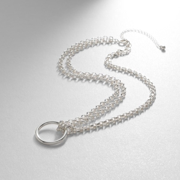 シルバー サークルモチーフ ダブルチェーンチョーカー