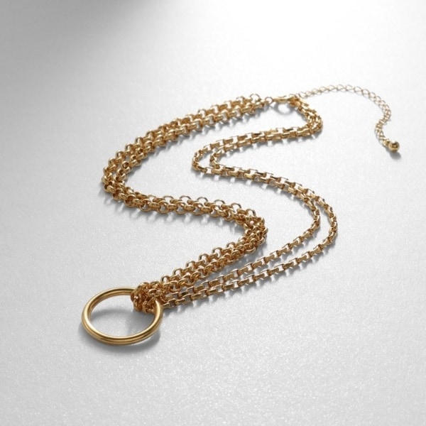 ボリューム感のあるチェーンを2連にしサークルモチーフをセンターに配置した大胆なデザイン。