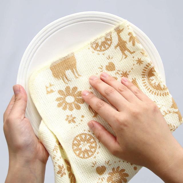 繊維評価技術協議会で抗菌防臭加工が認定されています。繊維上の菌の増殖を抑制し、防臭効果があるので、台拭きなど濡れた状態で使用するときも衛生的に使えます。