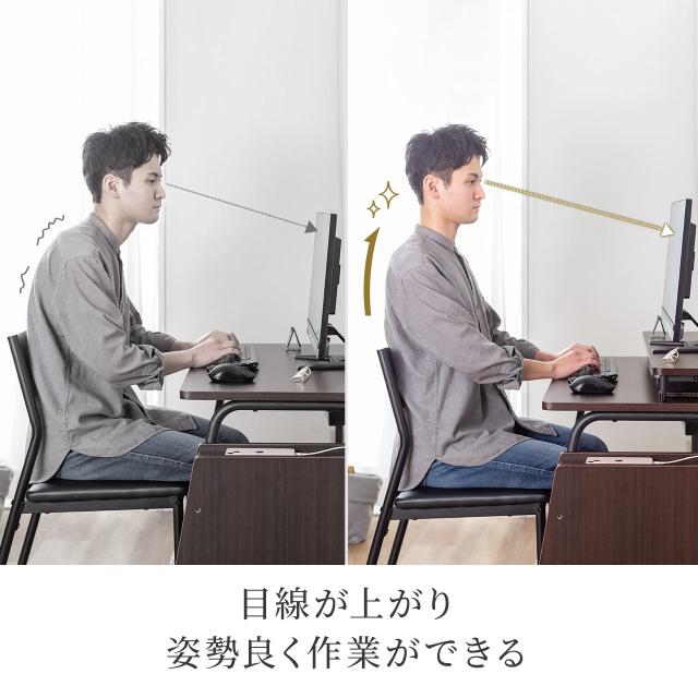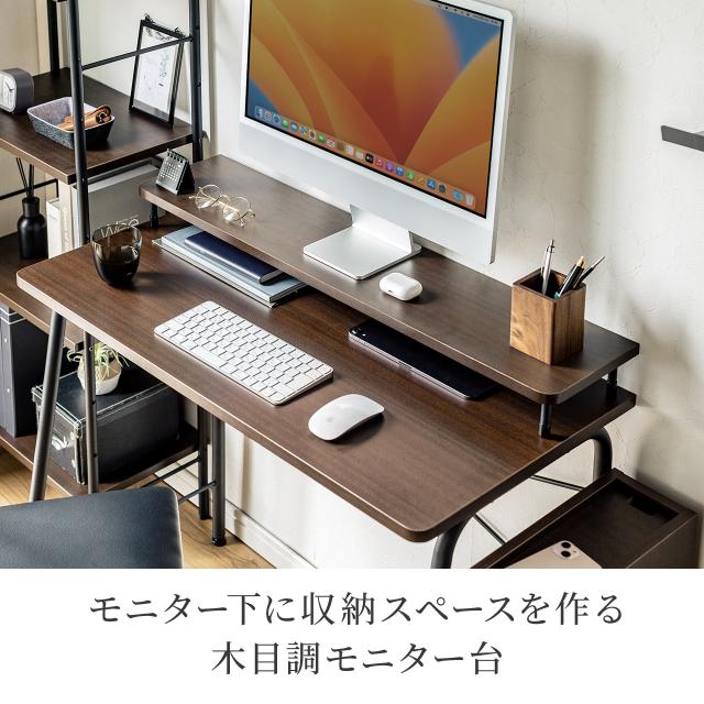 モニター台 机上台 幅90cm モニター下収納 木製 ダークブラウン Cercle[100-CERMR1BR]