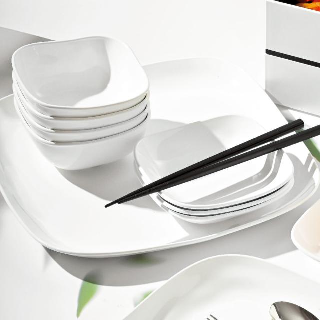「モダンスクエア」シリーズの食器はスタッキングが可能なので、すっきりと収納する事ができます。食器洗い乾燥機・電子レンジに対応しているので、毎日のお手入れやお料理の温め直しも簡単です。
