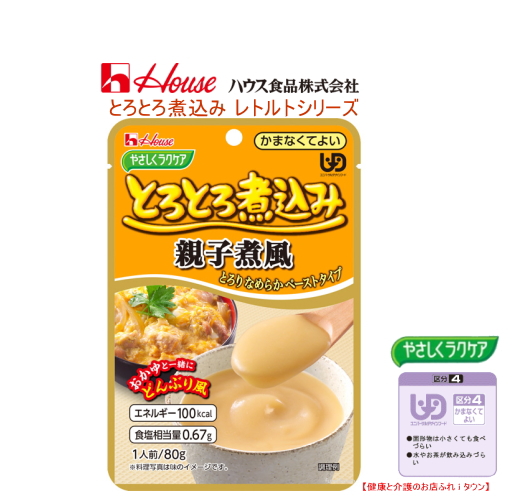 【とろとろ煮込み 親子煮風 80g】 ハウス食品やさしくラクケアシリーズ ※お料理する方にもお手軽な調理済食品 すりつぶした鶏肉の親子煮風ペーストです。[UDF区分4] かまなくてよいレトルト おかず 介護 福祉 サービス 高齢 者 デイ サービス