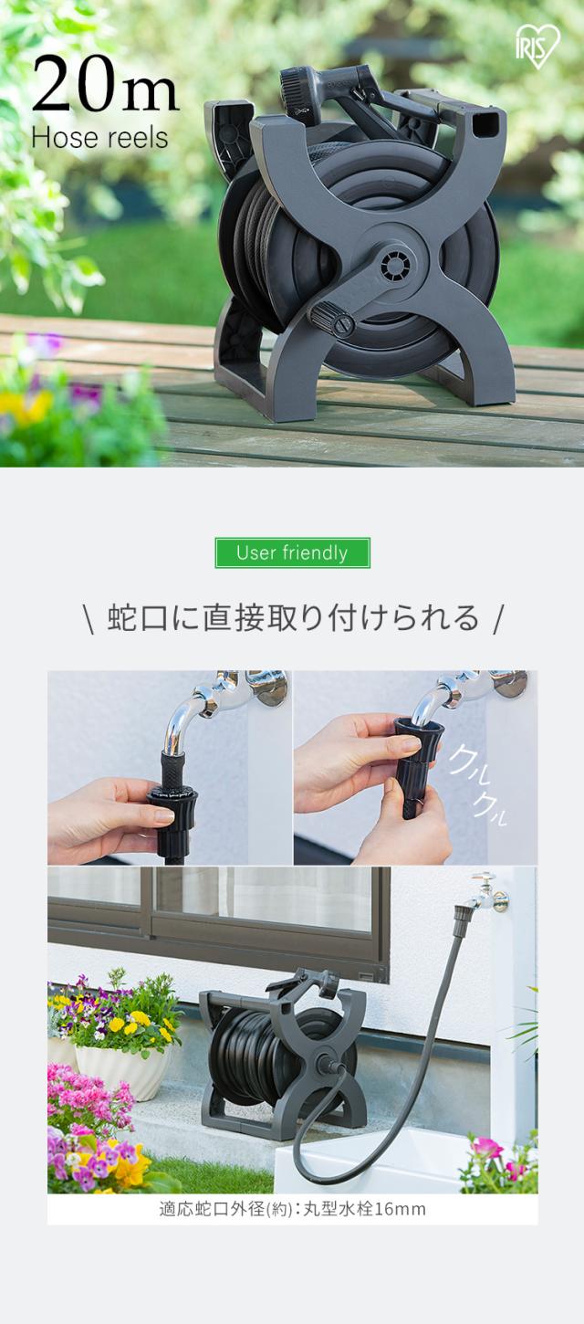 ホースリール エックスホースリール20M ECO XHR-20E ダークグレー/ブラック ホース 散水 園芸 ガーデニング 水やり 水まき 洗車 掃除 アクアガン 家庭用 屋外用 ガーデン アイリスオーヤマ [ota]【2年保証付き】