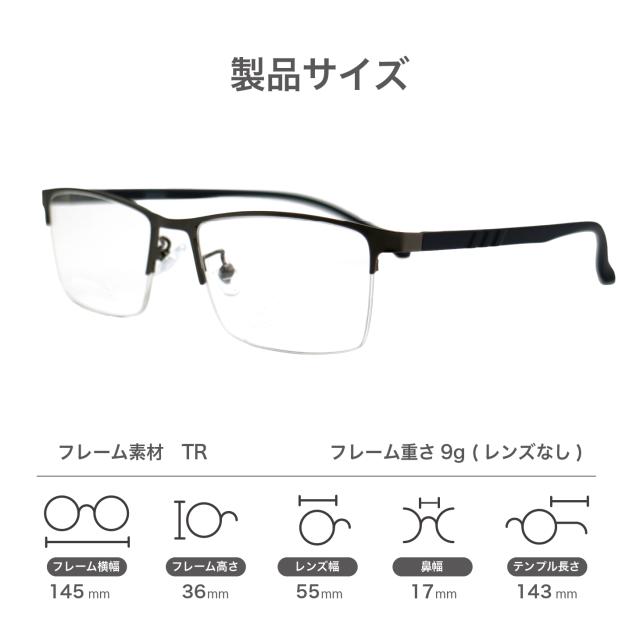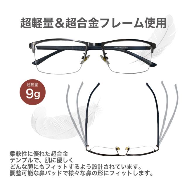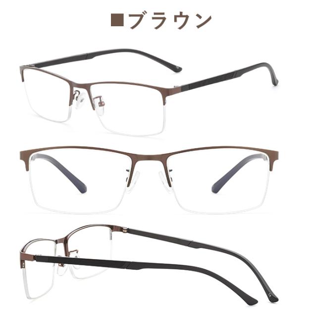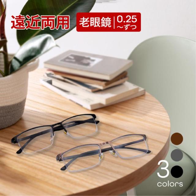 度数+0.25刻みで選べる!遠近両用老眼鏡 遠くも見える メガネ ブルーライトカット シニアグラス おしゃれ レディース メンズ ブラック シルバー ブラウン ナイロール ハーフリム スクエア オーダーメイド返品交換不可 58002-enkin