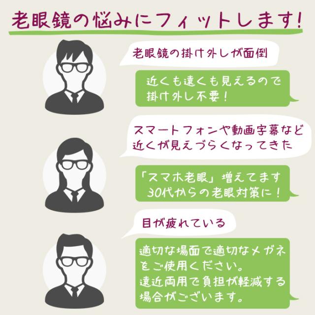 コンタクトレンズを使用している方や裸眼の方で、スマートフォンの操作や読書など、近くが見えづらい方にオススメです。