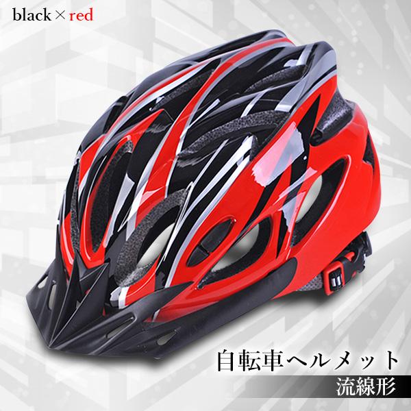 ヘルメット 自転車 大人用 子供用 兼用 流線型 ブラック×レッド 超軽量 サイズ調整可能 通学 通勤 中学生 高校生 ロードバイク (管理S) 送料無料