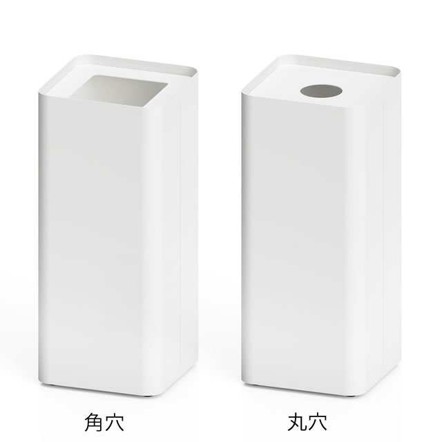 主張を抑えながら体裁と存在感を意識した屋内用の小型屑入です。利用目的に合わせて2種類の投入口、表示無しを含む5種類の分別表示をご用意しています。