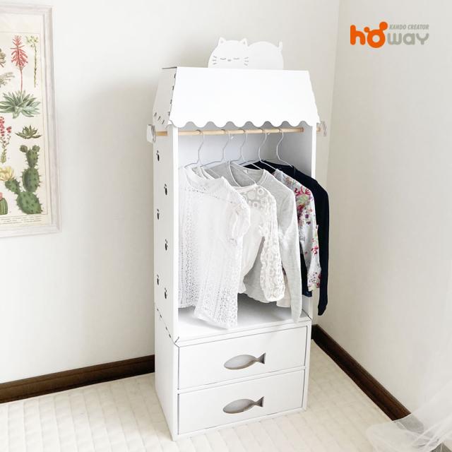 ハンガーラック チェスト セット ダンボール 段ボール 収納 家具 段ボール家具 ダンボール家具 軽い 子供用 子供 キッズ 引き出し おしゃれ 洋服 子供服 ポールハンガー ハンガーポール 2段 木製 スリム 子供部屋 ねこ 入園 入学