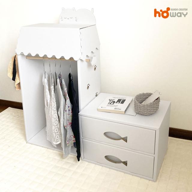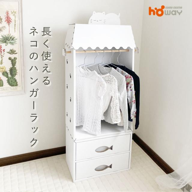 ハンガーラック チェスト セット ダンボール 段ボール 収納 家具 段ボール家具 ダンボール家具 軽い 子供用 子供 キッズ 引き出し おしゃれ 洋服 子供服 ポールハンガー ハンガーポール 木製 スリム 子供部屋 ねこ 入園 入学