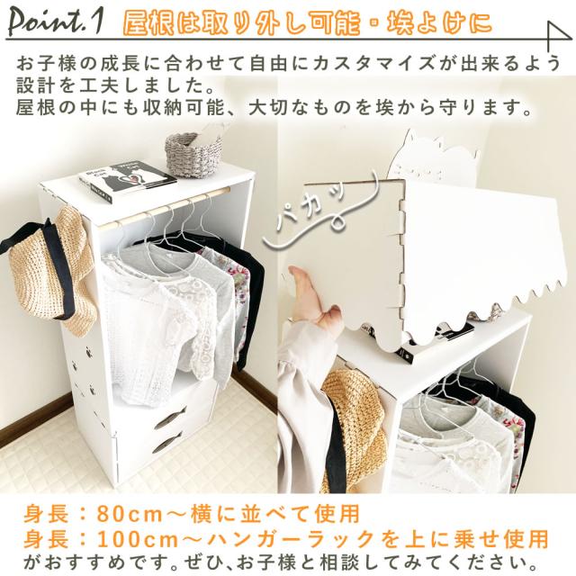 △子供が夢中になるハンガーラック&チェストで習慣づけ△幼稚園、保育園に入園したら、 自分だけのスペースでおきがえする習慣をみにつけたい!