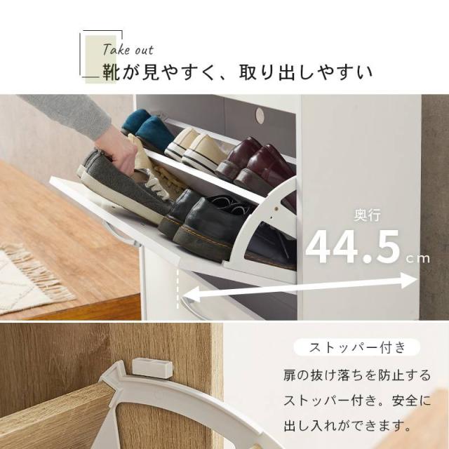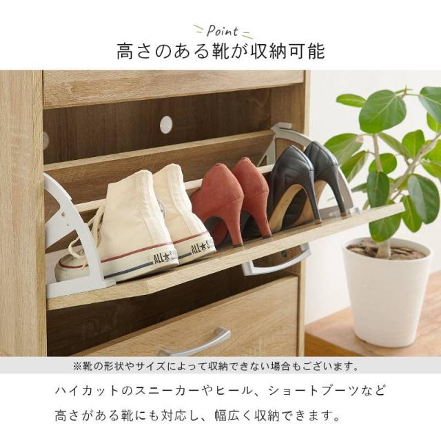引出し付きで靴のお手入れ道具や玄関小物を収納可能