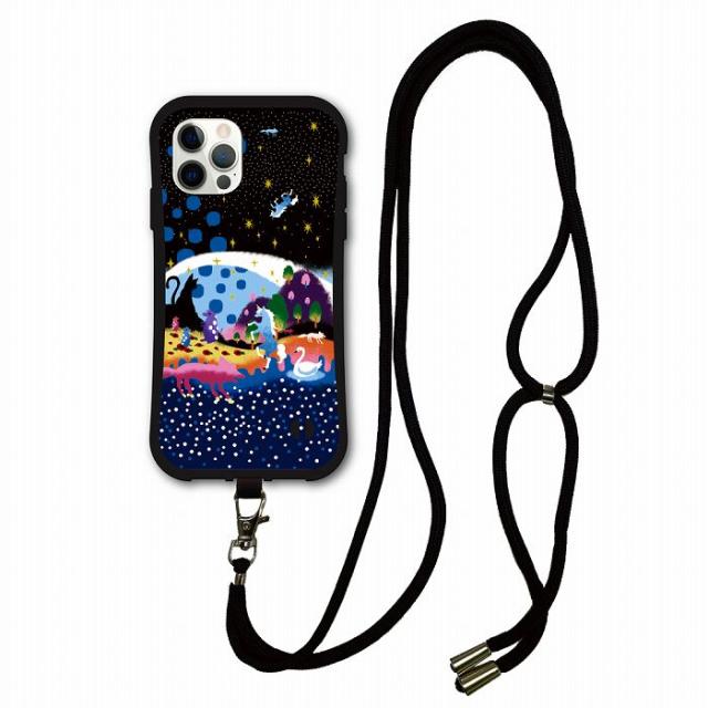 スマホショルダー付 スカラー scolar iPhone17 スマホケース 耐衝撃 i-coronケース iPhone Air 16e 16 Pro 15 14 13 12 11 スマホカバー 夜空を飛ぶ馬 白鳥たち かわいい iphoneケース グリップケース ショルダーストラップ 肩掛け