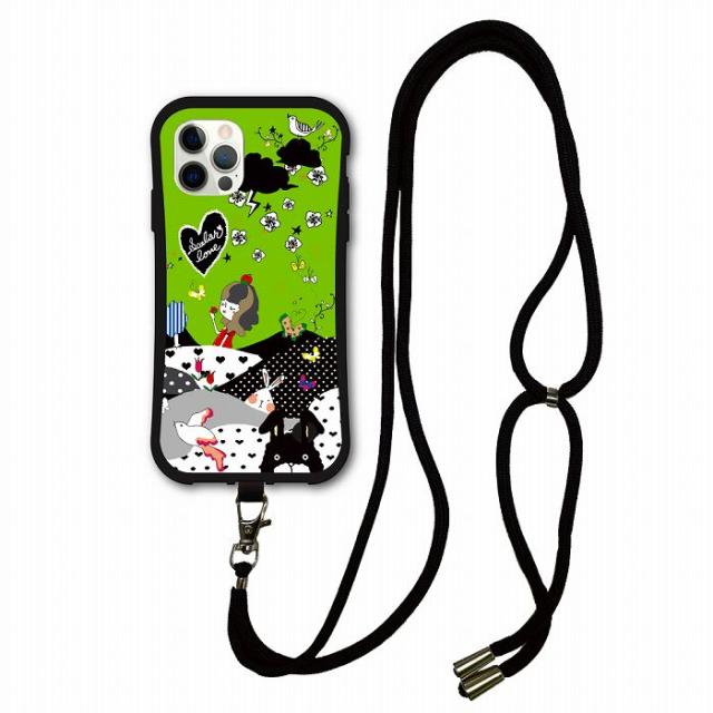 スマホショルダー付 スカラー scolar iPhone17 スマホケース 耐衝撃 i-coronケース iPhone Air 16e 16 Pro 15 14 13 12 11 スマホカバー メルヘン柄 女の子 ラビル グリーン かわいい iphoneケース グリップケース ショルダーストラップ 肩掛け