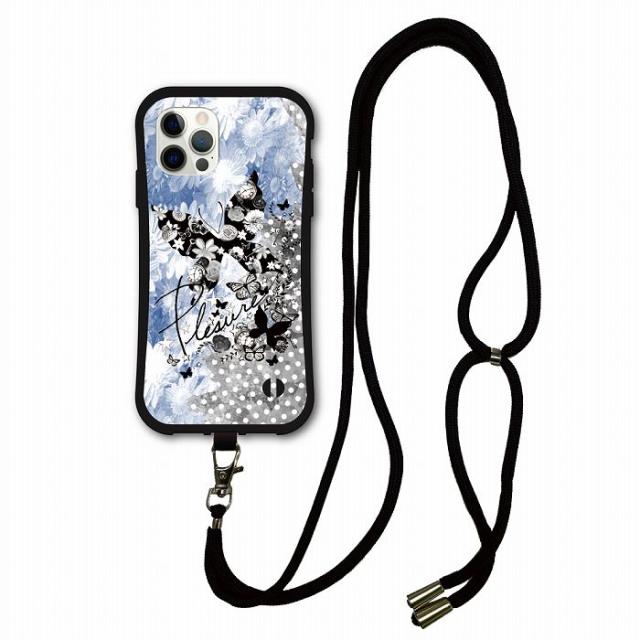 スマホショルダー付 スカラー scolar iPhone17 スマホケース 耐衝撃 i-coronケース iPhone Air 16e 16 Pro 15 14 13 12 11 スマホカバー クールな花とドットの背景 チョウ かわいいデザイン iphoneケース グリップケース ショルダーストラップ 肩掛け
