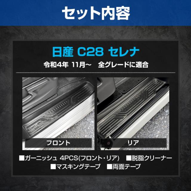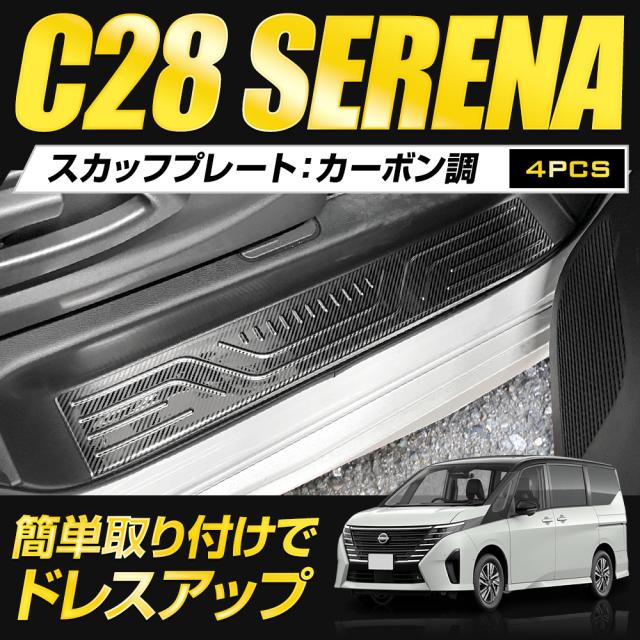 [対象商品タイムセール10%OFF]C28 セレナ 専用 スカッフプレート [4PCS] SERENA カーボン調 ガーニッシュ 送料無料 カスタム パーツ アクセサリー ドレスアップ 日産 NISSAN