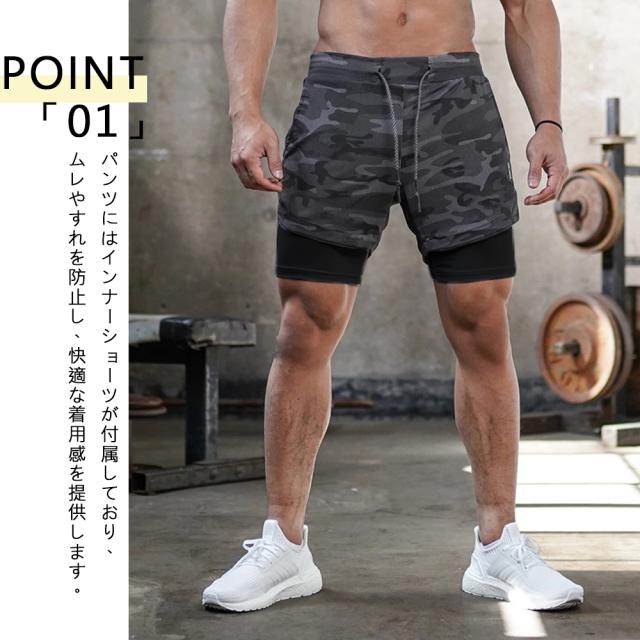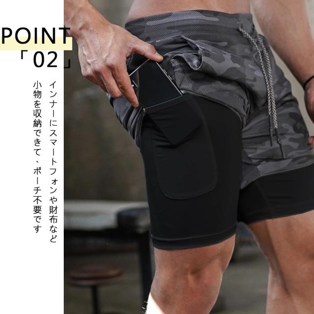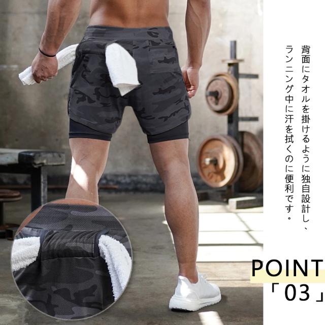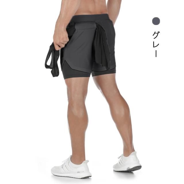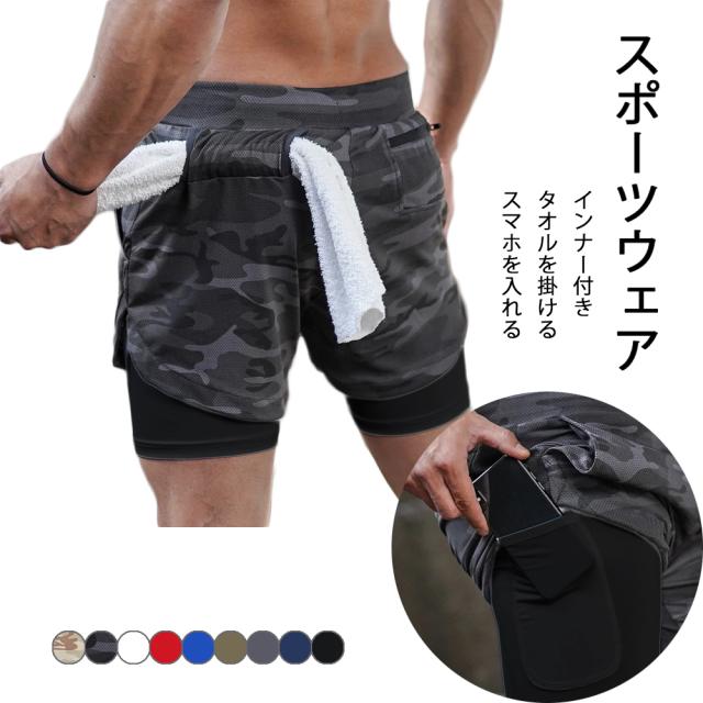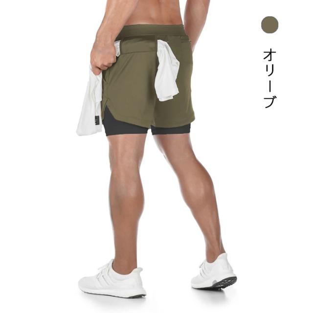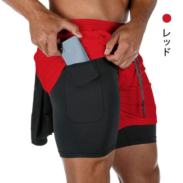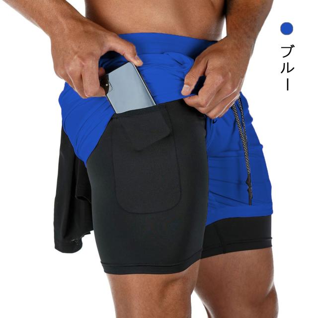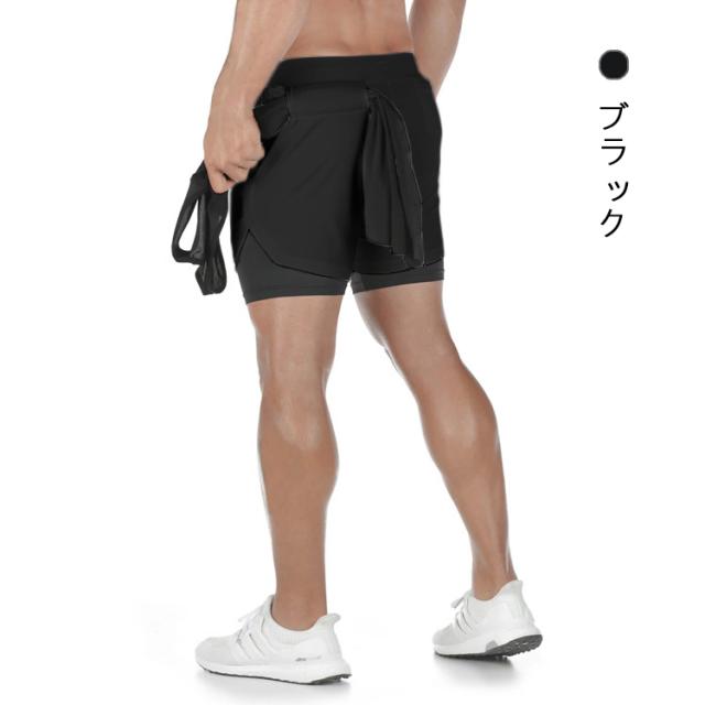 ショートパンツ インナー付きスポーツウェア トレーニング パンツ ランニング サーフィンジョギング スマホポケット付き ストレッチ 速乾機能性運動着 ※タオル付きません