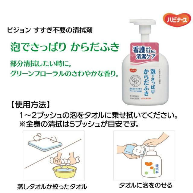 泡でさっぱりからだふき 本体 1本(500mL)【 ピジョン 介護 防災 洗い流し不要 お湯不要 バスグッズ 入浴 介護】