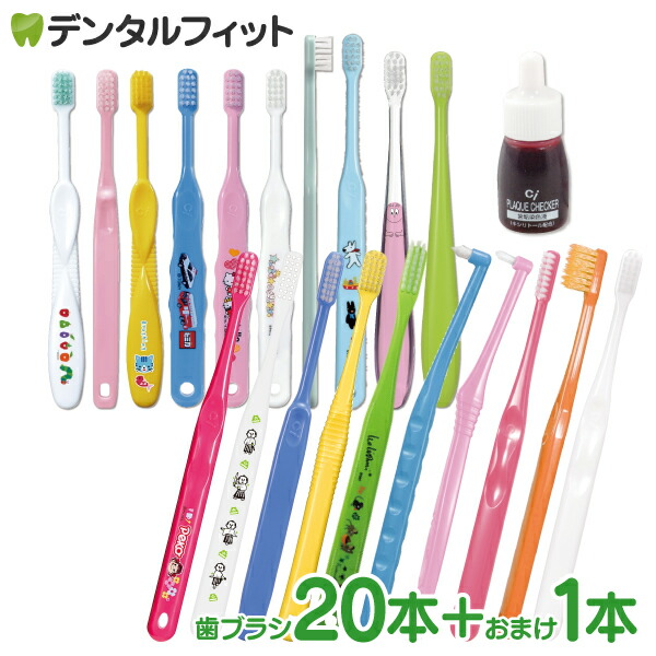 【メール便選択で送料無料】福袋 親子用 歯ブラシ アソート20本セット【Ciプラークチェッカーミニボトル1本5mLおまけ付き】※返品不可 おやこ福袋