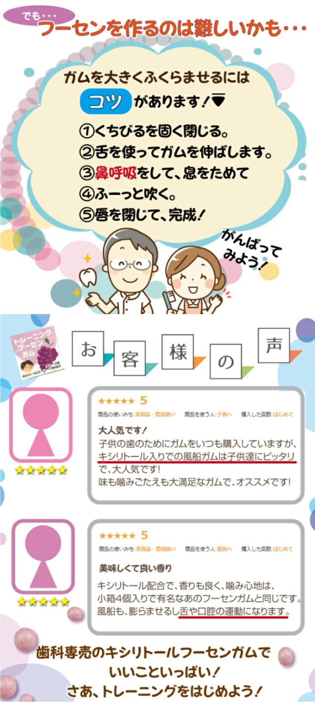 【メール便選択で送料無料】歯科医院専用トレーニング フーセンガム(4粒×24箱) グレープ味 風船ガム キシリトール配合 ぶどう風味 キシリトールガム 歯科専用