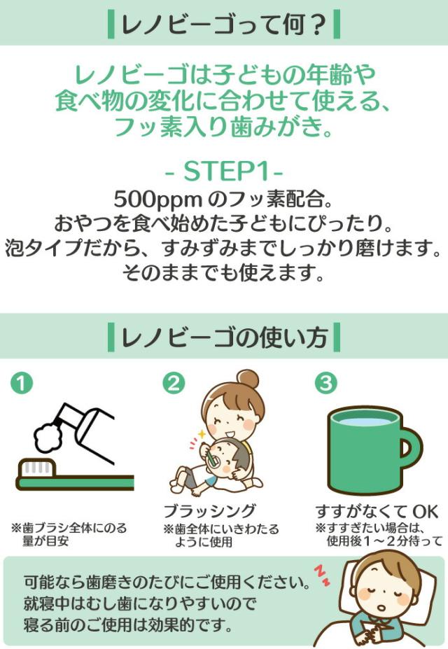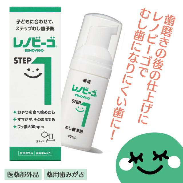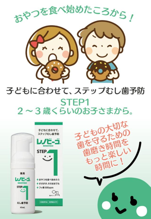 レノビーゴ STEP1 1本(40mL)フッ素500ppm おやつの食べ始め 2〜3歳 歯が生え揃う頃 うがい不要 むし歯予防※大人まで幅広く使用できます