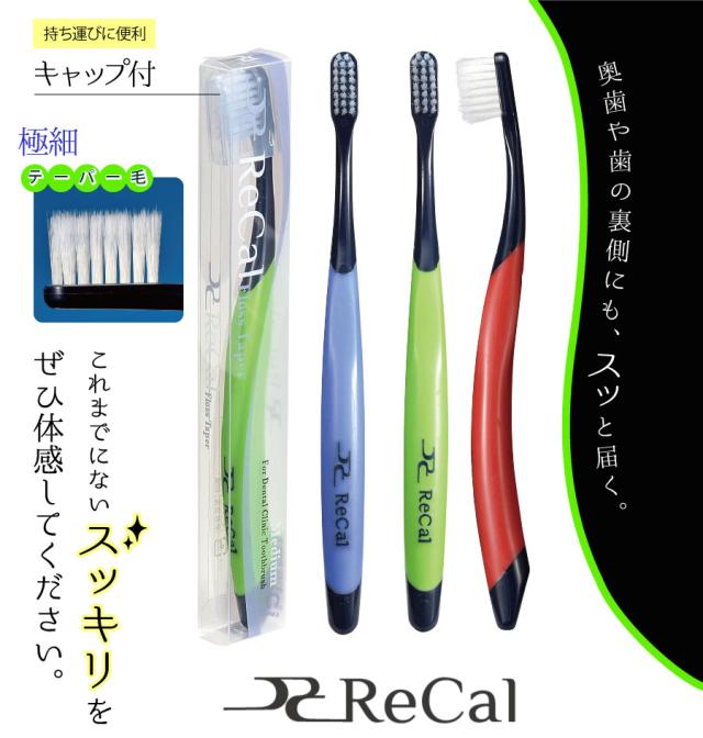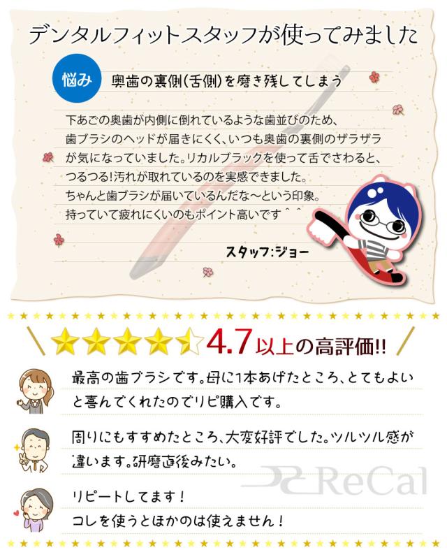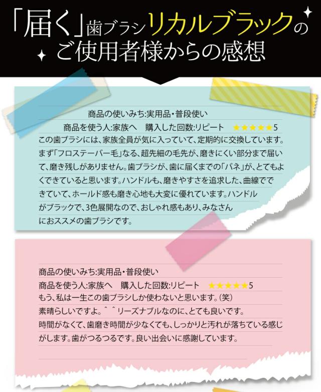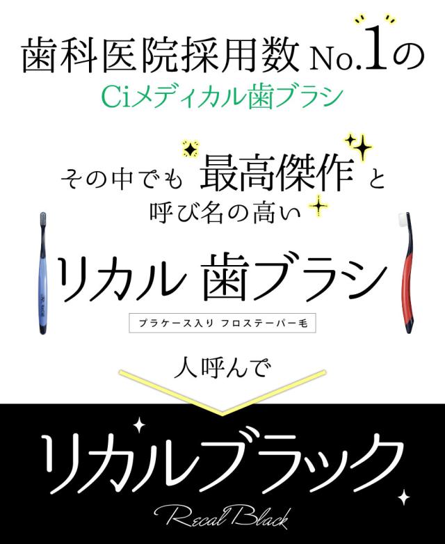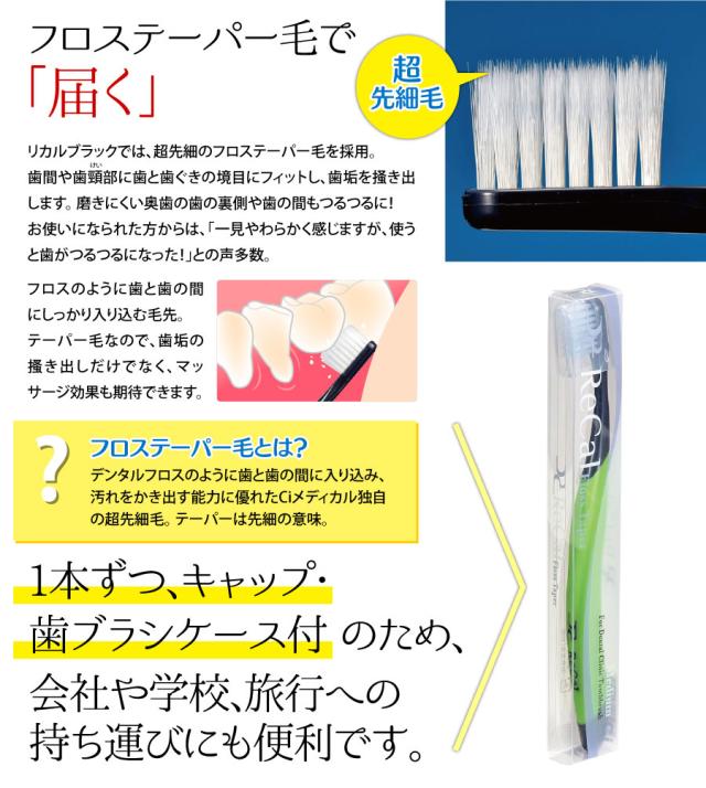 【★10%OFF 3/20 9:59迄】【メール便選択で送料無料】歯ブラシ リカル フロステーパー毛(Mふつう)ブラックハンドル キャップ付 6本