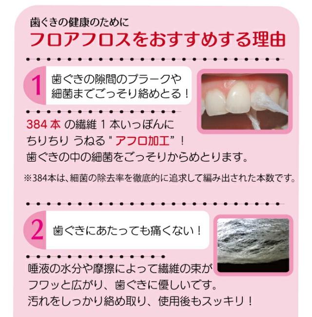 歯ぐきの健康につながるのはこのフロアフロスであると推奨している信頼度の高い商品です。
