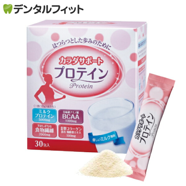 元気をキープしたい方、運動習慣を見直したい方、しっかり歩んでいきたい方に。 手軽に携帯できる分包タイプ。 良質なミルクプロテイン、筋肉の合成をサポートするBCAA(分岐鎖アミノ酸)、軟骨をサポートするII型コラーゲン、不足しがちな食物繊維等を配合した健康食品です。