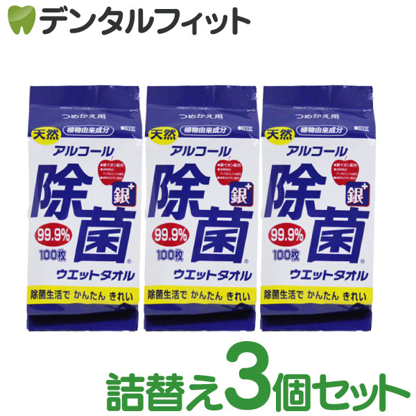 【日本製】コーヨー アルコール 除菌ウェットタオル 詰替用 3パックセット(1パック/100枚入) アルコール消毒