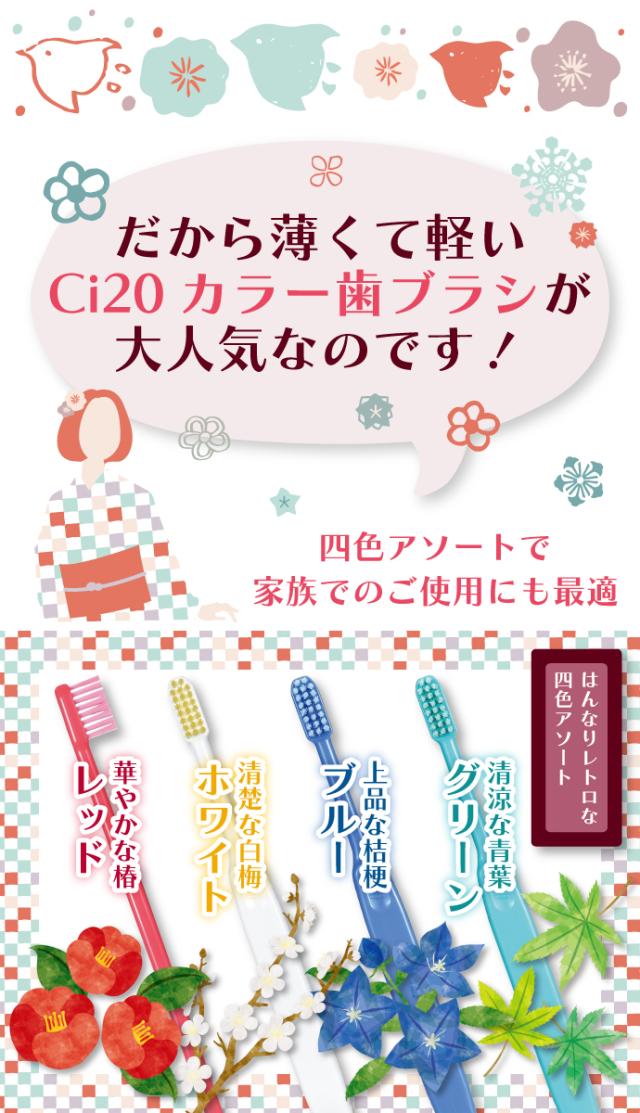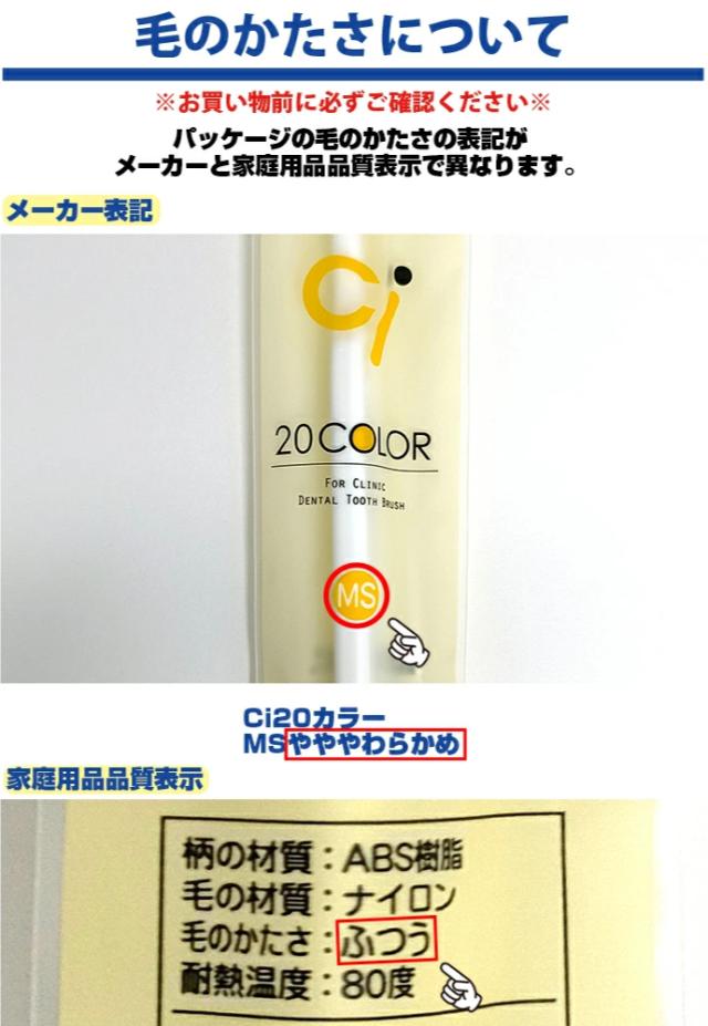 歯ブラシ Ci20カラー / MSやややわらかめ / 1箱(100本)【Ciメディカル 歯ブラシ】