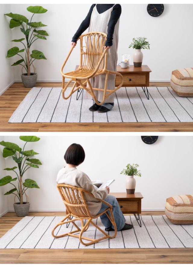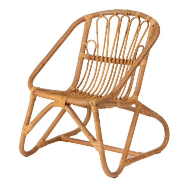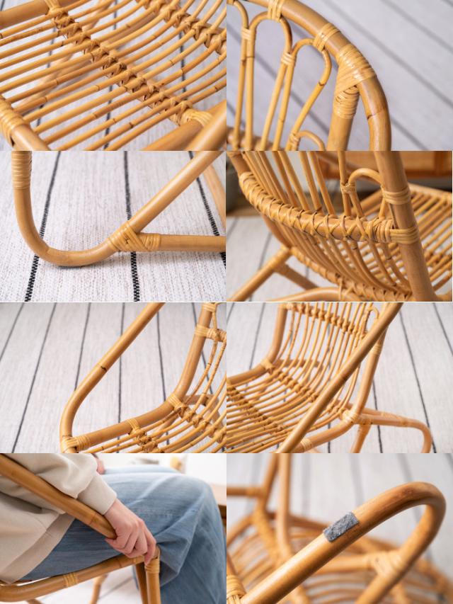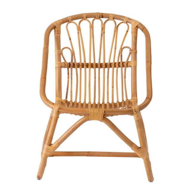 天然素材の優しい風合い。丸みを帯びたコンパクトなラタンチェア。