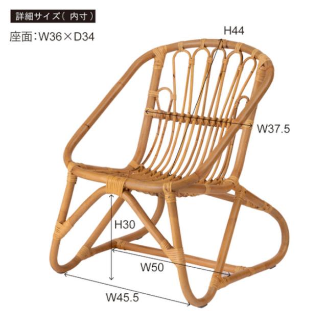 ■商品名:チェア 椅子 ラタンチェア 籐椅子 W50×D58×H65×SH35cm パーソナルチェア コンパクト インテリア 家具 リビング くつろぎ ナチュラル レトロ