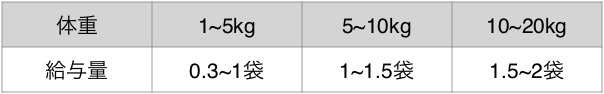 ・給与量は目安ですので、愛犬・愛猫のコンディションを観察しながら与えてください。