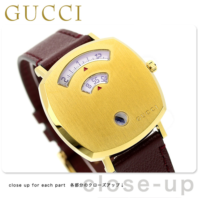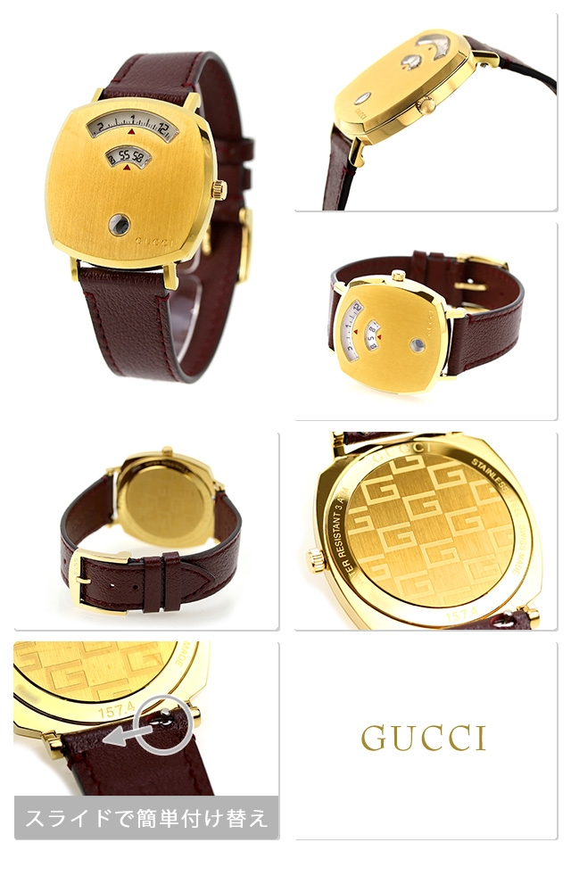 グッチ グリップ クオーツ 腕時計 メンズ レディース 革ベルト GUCCI YA157405 アナログ ゴールド レッドブラウン 赤 スイス製