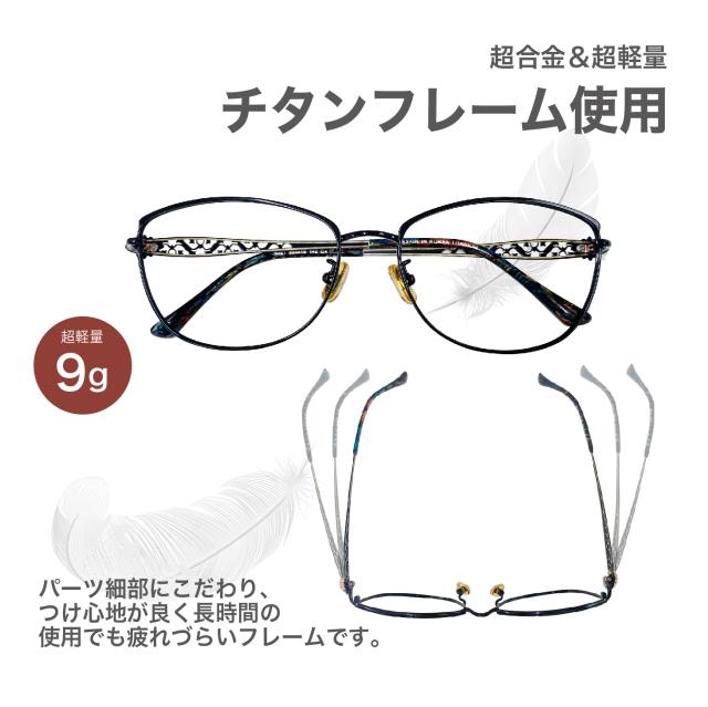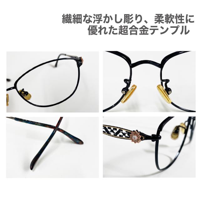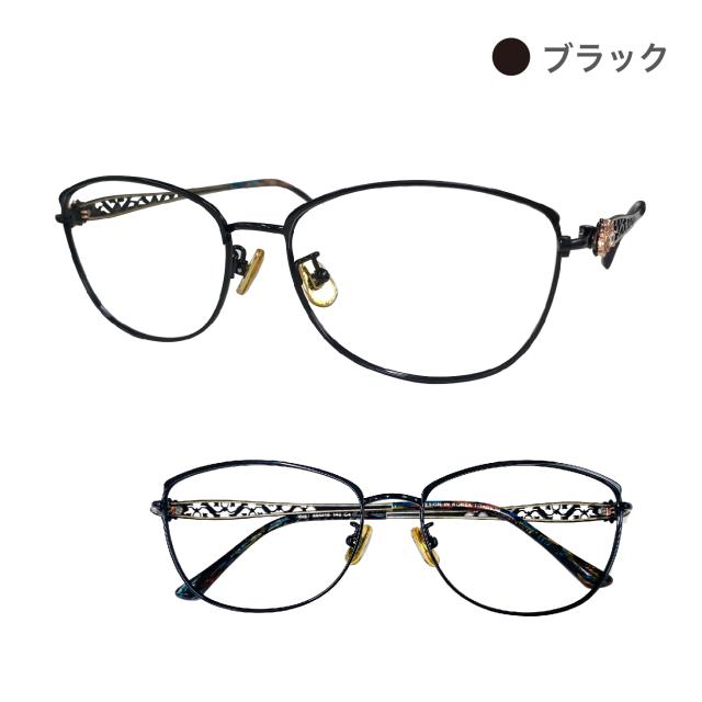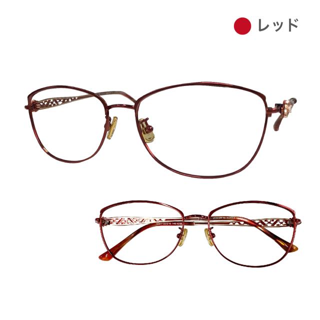 度数+0.25刻みで選べる!遠近両用老眼鏡 遠くも見える メガネ ブルーライトカット シニアグラス おしゃれ レディース 透かし彫り ライトストーン 花柄 レッド ブラック チタン カジュアル オーダーメイド返品交換不可 9021-enkin