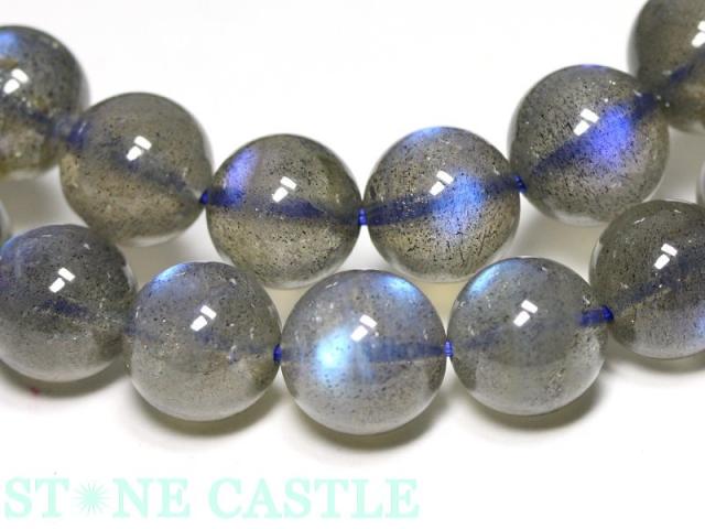透明感のある薄いグレーの石に、ラブラドライト特有の青色がかった輝きが美しいブレスレットです。光を受けると3Aグレードのよりもブルーの輝きが強く、ほぼ全ての石にシラー効果が確認できます。夜空にかかるオーロラのような美しさを存分にご堪能いただけます。