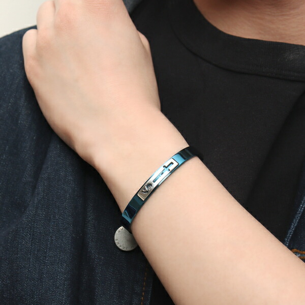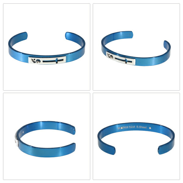 ウルフマンBRS ウルフ クロス シルバー バングル ブルー オオカミ 狼 シルバーバングル メンズ ブレスレット ブレス 腕輪 シルバー925 ステンレス