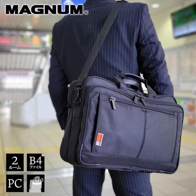 【MAGNUM】 マグナム ビジネスバッグ 手提げバッグ ショルダーバッグ メンズ B4ファイル 2way 2室 軽量 横 1680Dポリエスター 出張 通勤 黒 KBN26547