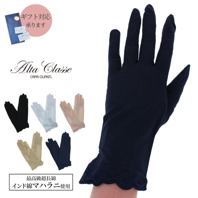 アルタクラッセ UV手袋 UVカット 紫外線対策 綿100% ショート丈 24cm 五本指 洗える エレガント 上品 フェミニン シンプル プレゼント 指あり 日焼け止め