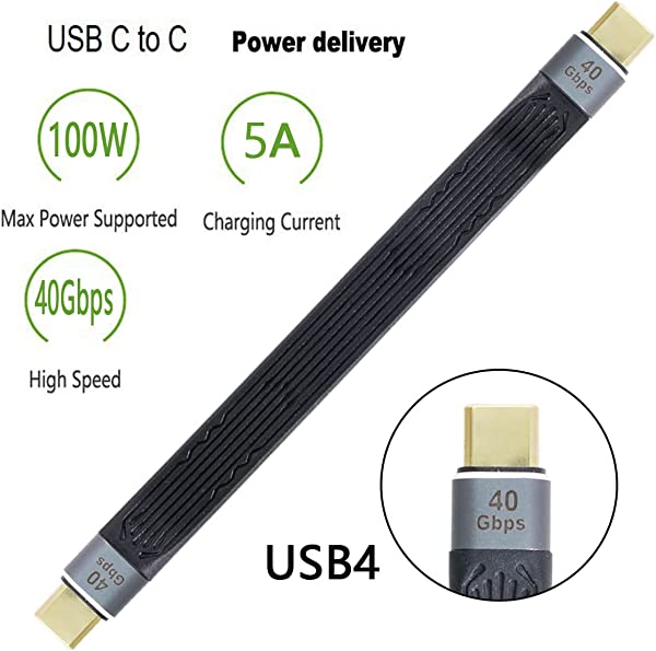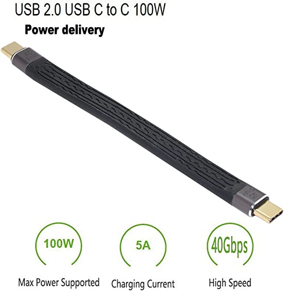 Type-C USB-C オス - オス USB4 40Gbps 100W 8K フラットスリム FPC データケーブル ノートパソコン&電話用 13cm 40Gbpsのデータ、8Kビデオ20V 5A、100Wの電力をサポート。