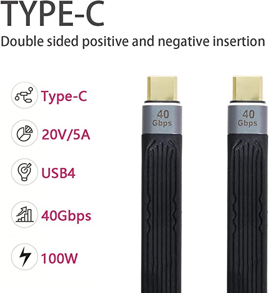 Type-C USB-C オス-オス USB4 40Gbps 100W 8K フラットスリム FPC データケーブル ノートパソコン&スマホ用 13cm