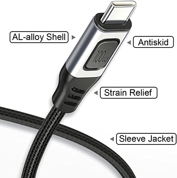 Type-C USB-C オス-オス USB 2.0 バージョン データケーブル Eマーカー 100W ノートパソコン&電話用