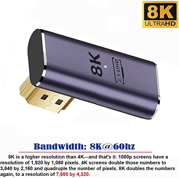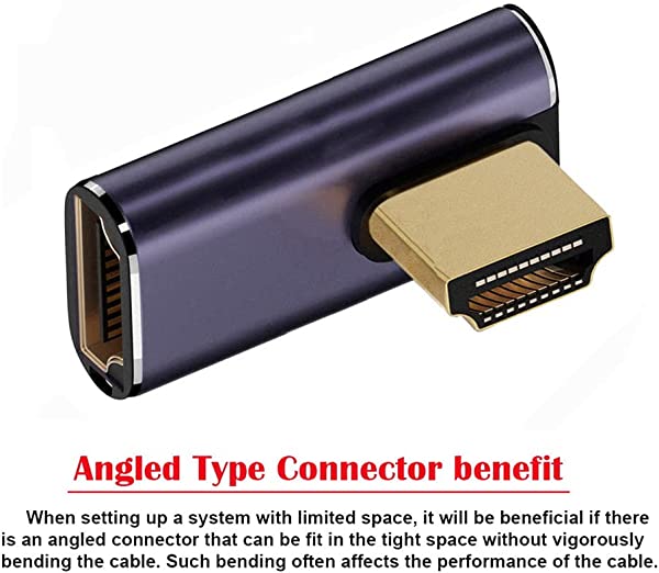 HDMIオス-HDMI 2.1メス垂直90度直角ロープロファイルUHD延長アダプター8K 60hz HDTV対応 HDMIアングルタイプ ポート周りのスペースが限られている場合でも、メスポートに接続できます。