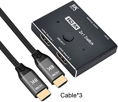 8K @ 60hz HDMI 互換 2.1 切替 スイッチ 3本 ケーブル 2-IN 1-OUT ハブサポート HDCPSST 拡張4K @ 60hz
