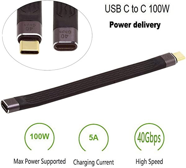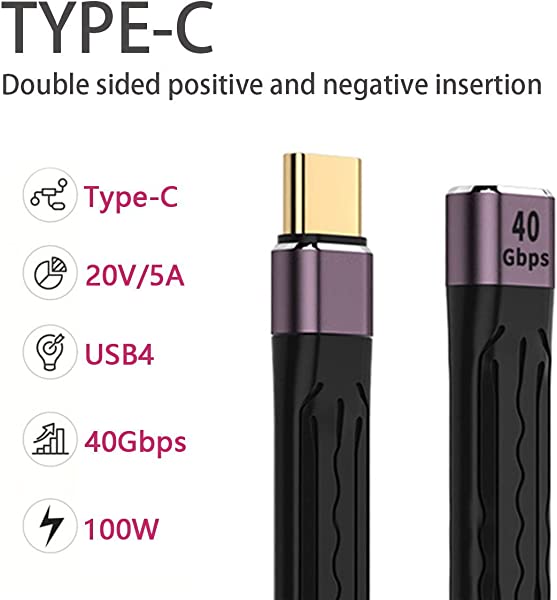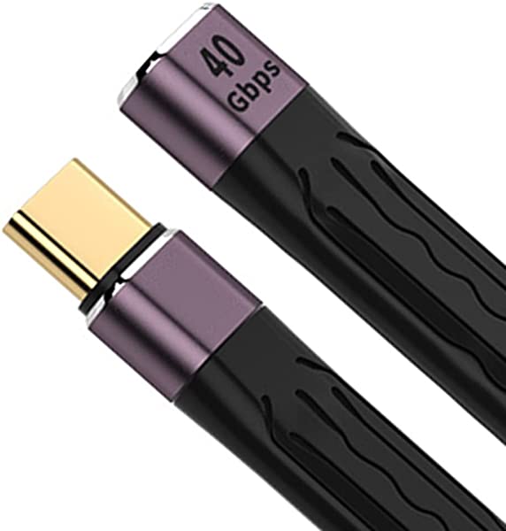 13cm USB4延長ケーブル スリム フラット オス - メス 40Gbps 100W充電 8K@60Hz Thunderbolt3/4に対応 1) 8K/5KウルトラHDビデオ出力: このUSB4ケーブルは、USB4またはThunderbolt3/4ポート搭載デバイスからUSB-Cモニターに接続できます。